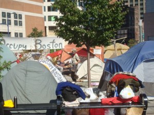 This weekend, I visited Boston to see friends, and while there, we checked out the Occupy Boston rally, located in Dewey Square, the heart of the city’s financial district. Occupy Boston is an off-shoot of Occupy Wall Street, the movement that has formed to protest corporate greed, bank bailouts, and budget cuts, especially to education and other domestic issues.
