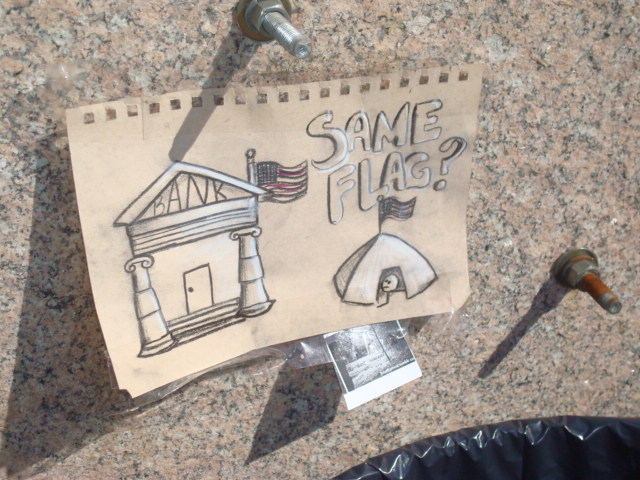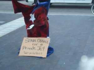 The movement is also doing a good job keeping itself unaffiliated with either political party. I didn’t see a sign for Obama or the Democratic Party. I did see a Ron Paul campaign worker handing out literature, but that was it. All of the signs were aimed at the abuse of corporate power and the high unemployment rate.